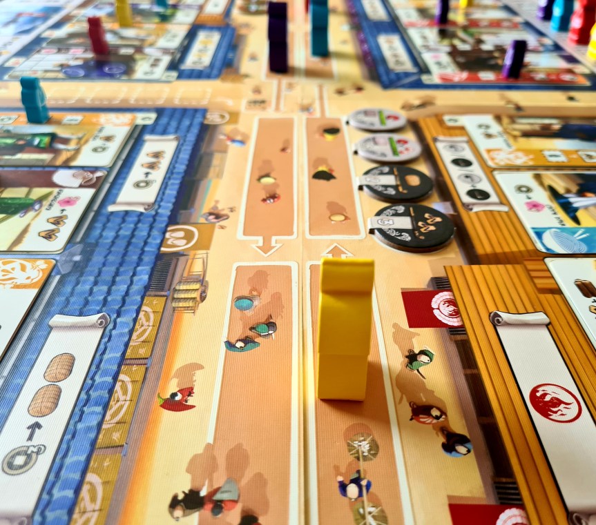 Pour toutes ces raisons, Iki est excellent à quatre joueurs et très bon à trois. Toutefois, un travail particulier a été mené pour proposer une version deux joueurs tout à fait honorable et appréciable. Dans cette configuration, des jetons blocage et l’ajout d’un personnage supplémentaire, choisi et placé par les joueurs à tour de rôle, simulent assez bien un troisième comparse. Le plateau, sur son verso, comporte de surcroît une place de moins dans chaque Nagaya pour qu’on arrive parfois au remplissage complet. Nous avons joué la plupart du temps à deux et même si Iki révèle tout son potentiel à quatre, il reste extrêmement plaisant en duel.